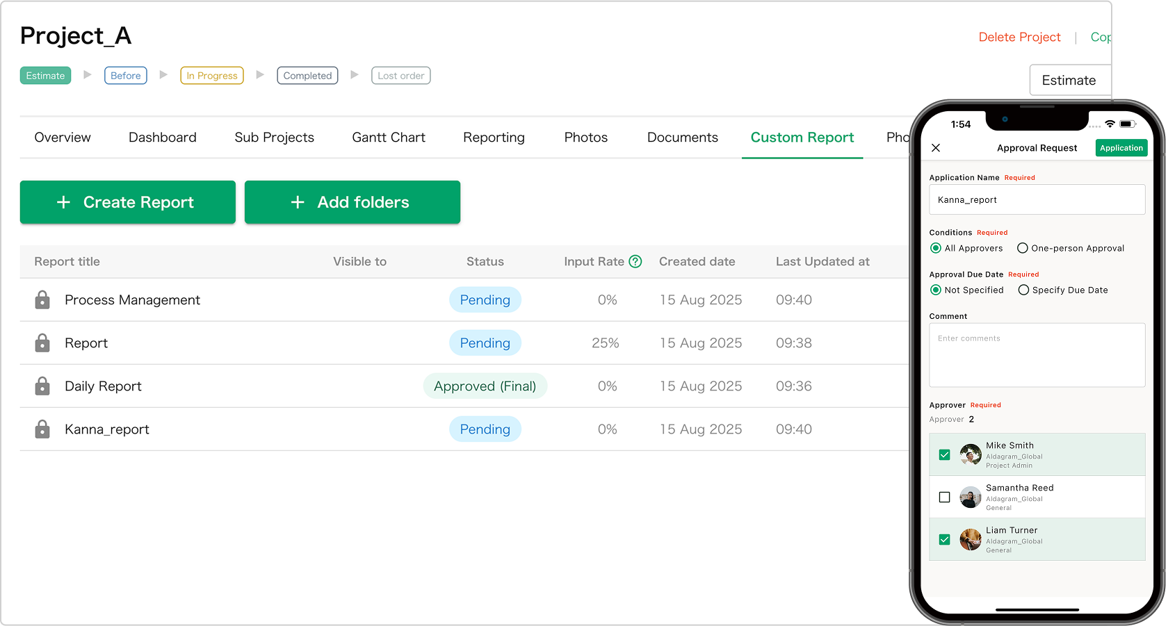 Our user friendly mobile interface means team members can quickly and easily create reports and instantly submit them.