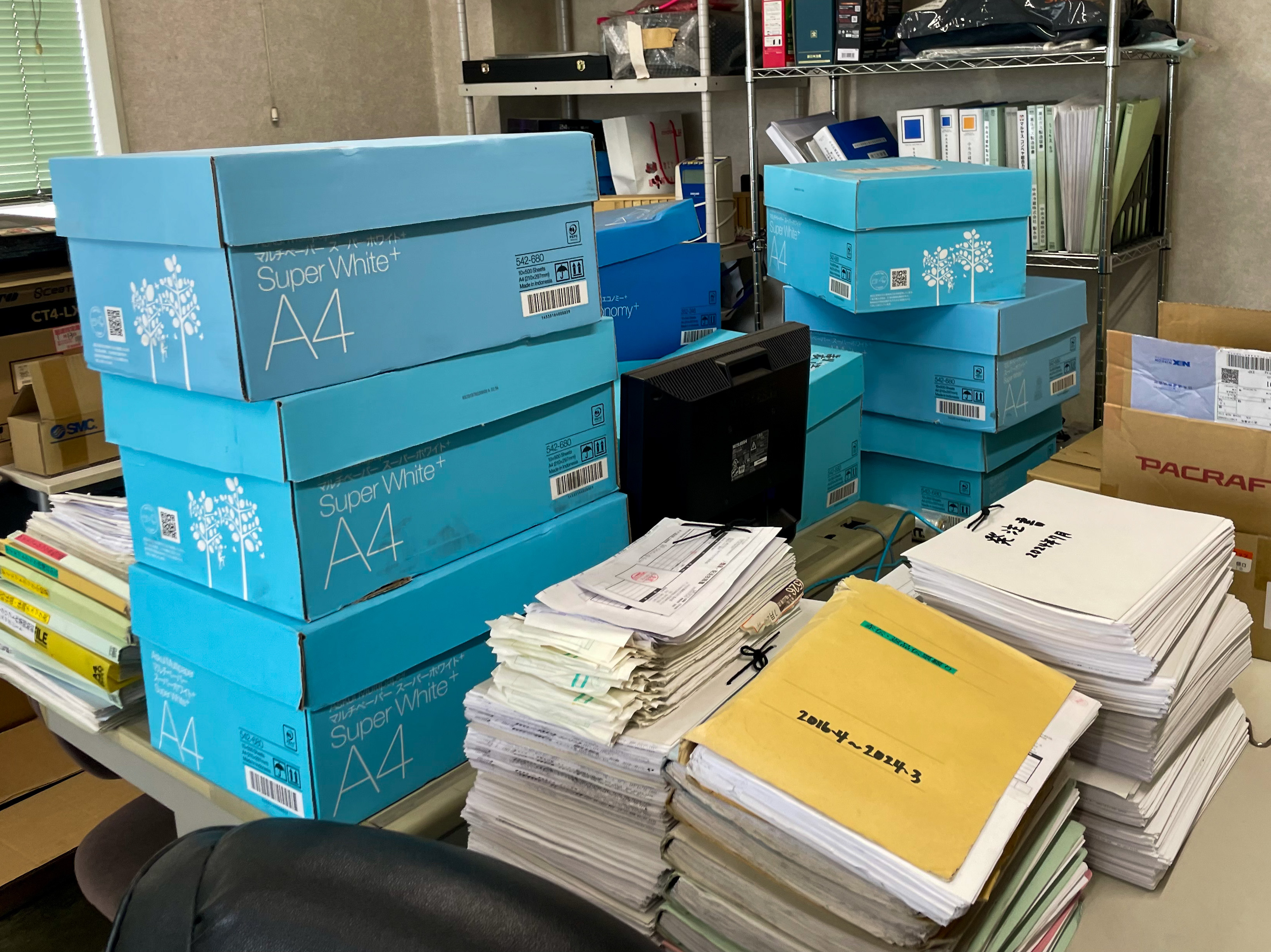 ・紙帳票が山積、管理と確認の限界:記入から提出、確認までに時間がかかり、保管・抽出作業も煩雑