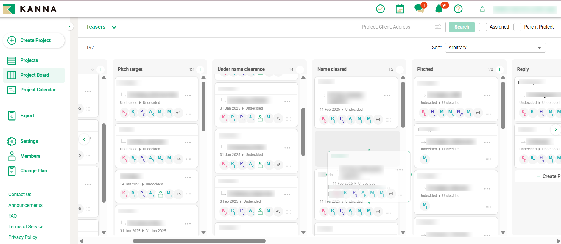 Now, every project follows a clear pipeline inside KANNA project board for tracking status. This looks like: