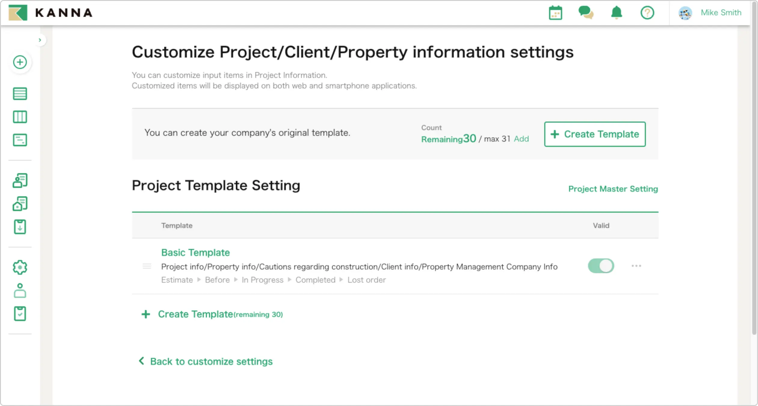 Define exactly what project, property, site, customer data and more is needed for each project. Create templates for different types of projects.