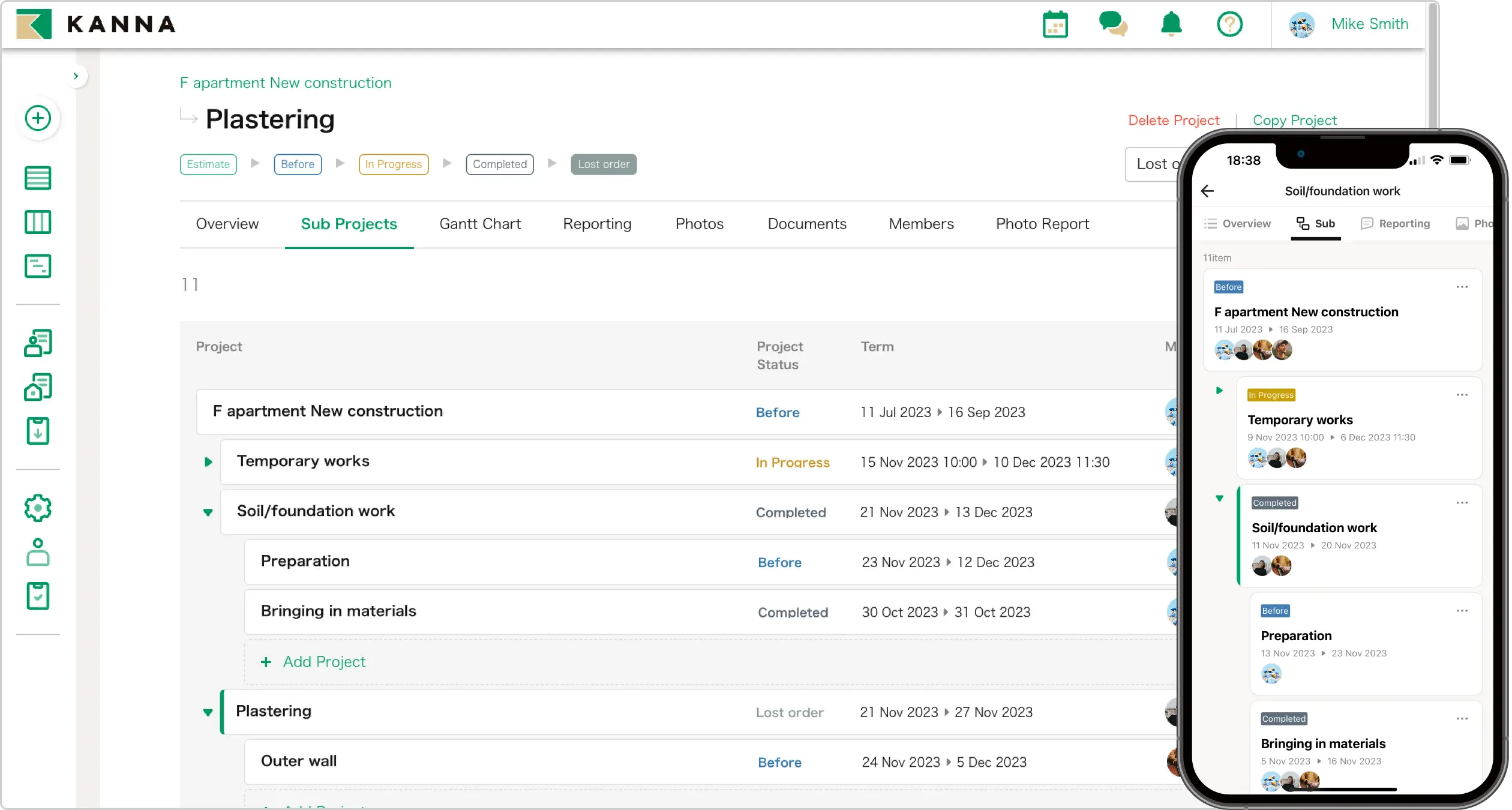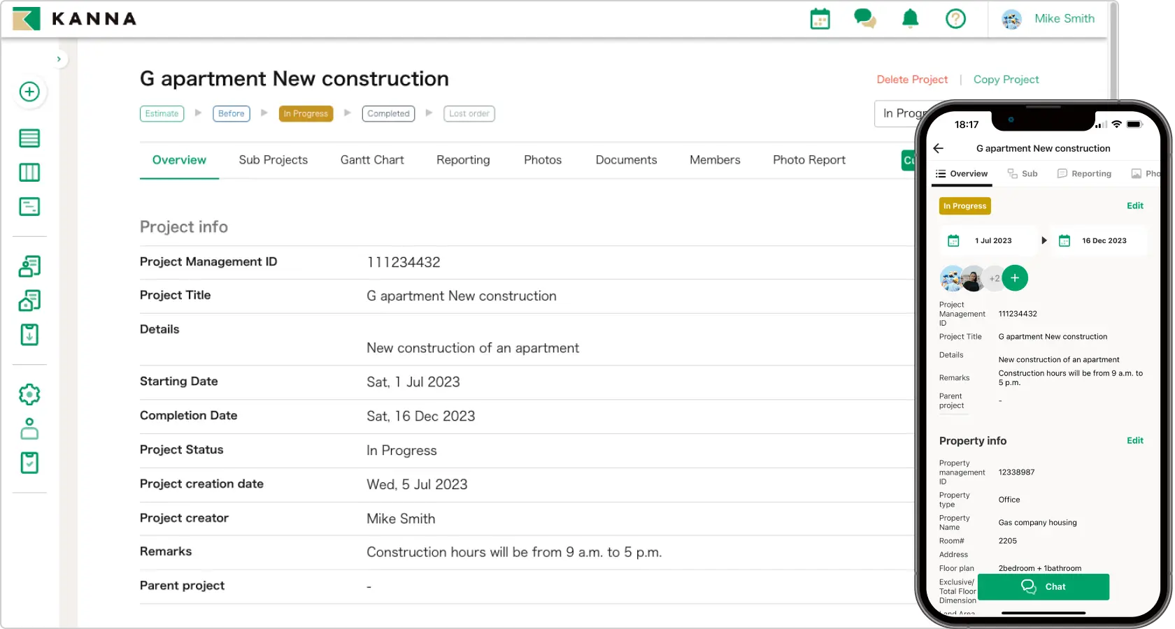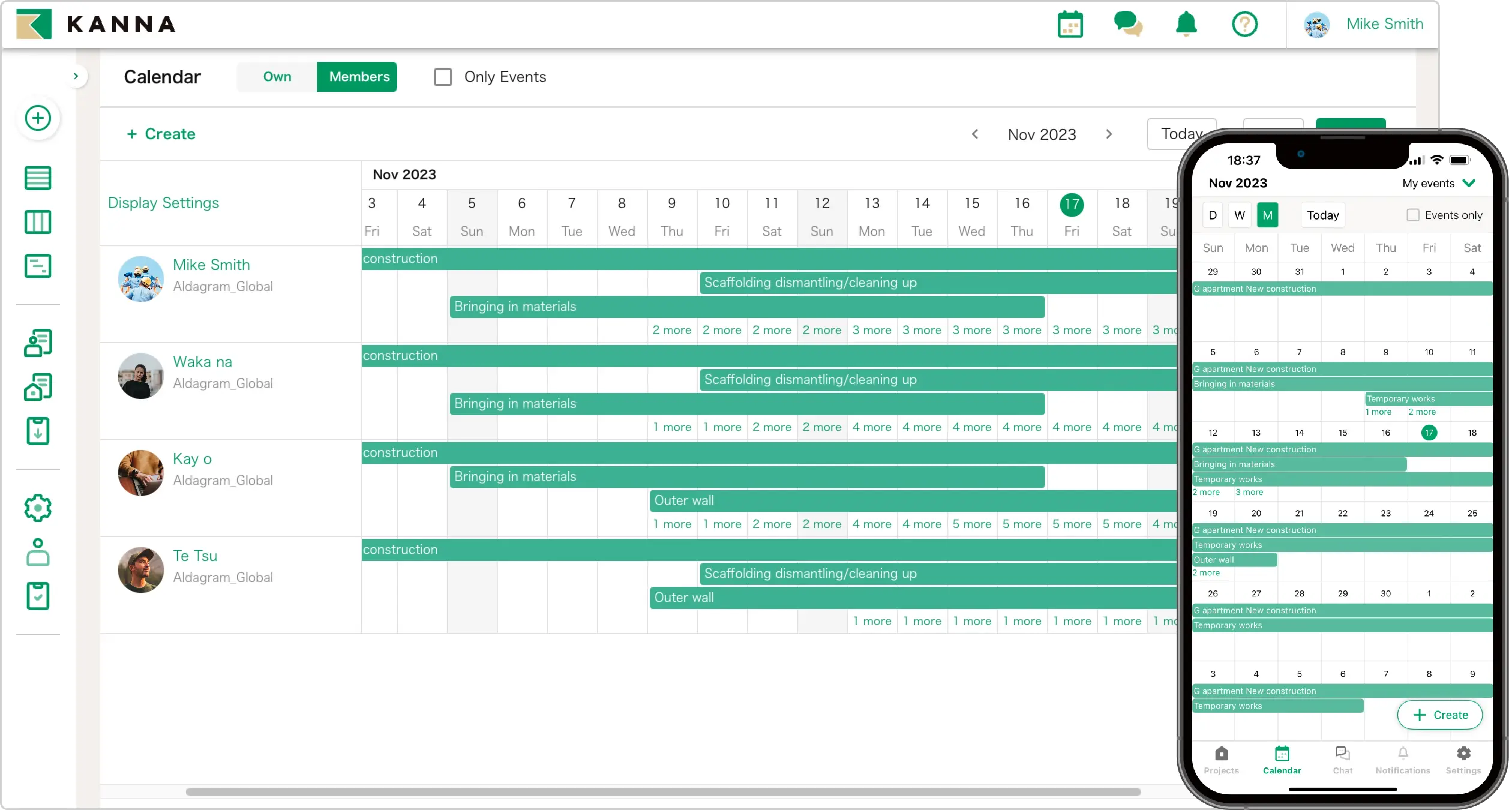 Manage daily on-site tasks, assigning responsibilities and setting due dates, all within a single platform, KANNA.