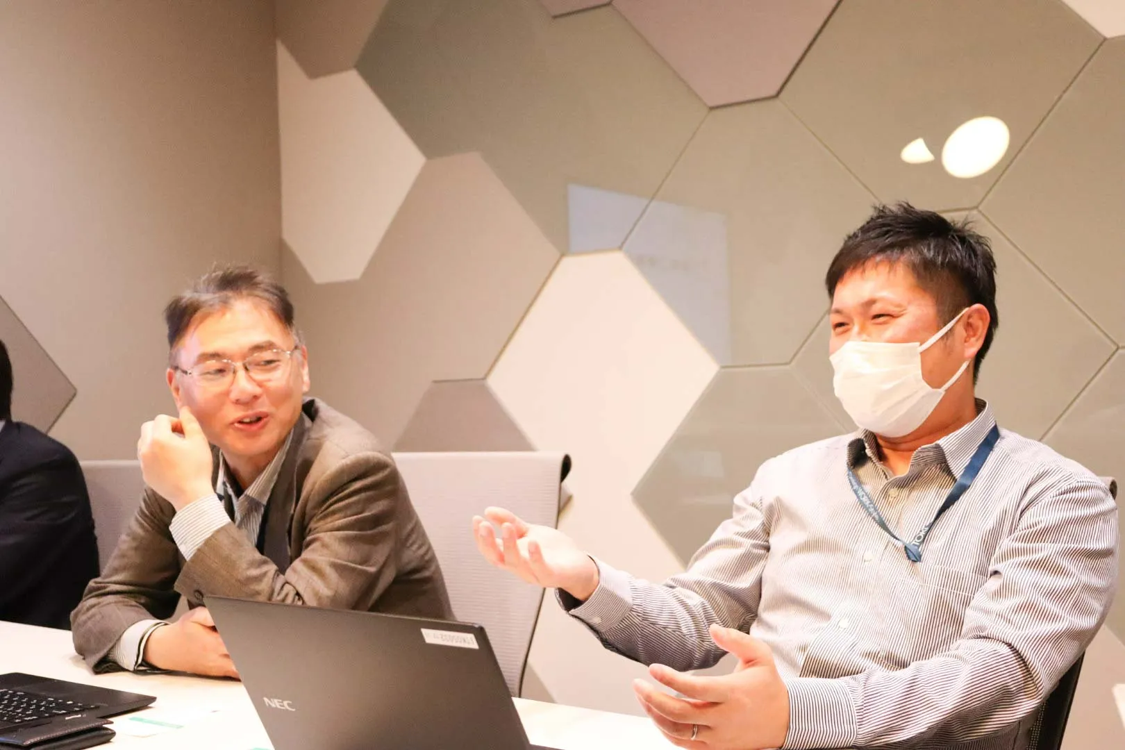 คุณคาคุโนะ : เรื่องนี้คล้ายกับเรื่องที่เราเคยกล่าวถึงคือเรื่อง "ปัญหาปี 2024" ในวงการขนส่งสินค้านั้นเราต้องร่วมงานกับผู้สูงอายุเป็นจำนวนมาก มีบางคนที่สามารถรับมือกับการเปลี่ยนแปลงจากเครื่องมือเดิม ๆ สู่เครื่องมือดิจิทัลได้ก็จริง แต่เมื่อพูดถึงโซเชี่ยล แอปพลิเคชั่น หรือ เกมส์ แล้วล่ะก็ สำหรับผู้ที่ไม่เคยใช้เครื่องมือดิจิทัลมาก่อนการที่อยู่ ๆ จะมาบังคับให้ เปลี่ยนวิธีการทำงานในทันทีก็คงไม่ค่อยมีใครชอบหรือพอใจมากนัก จึงเริ่มจากการให้ผู้ที่ต้องใช้งานได้ “ทดลอง” ใช้งานด้วยตัวเองก่อน