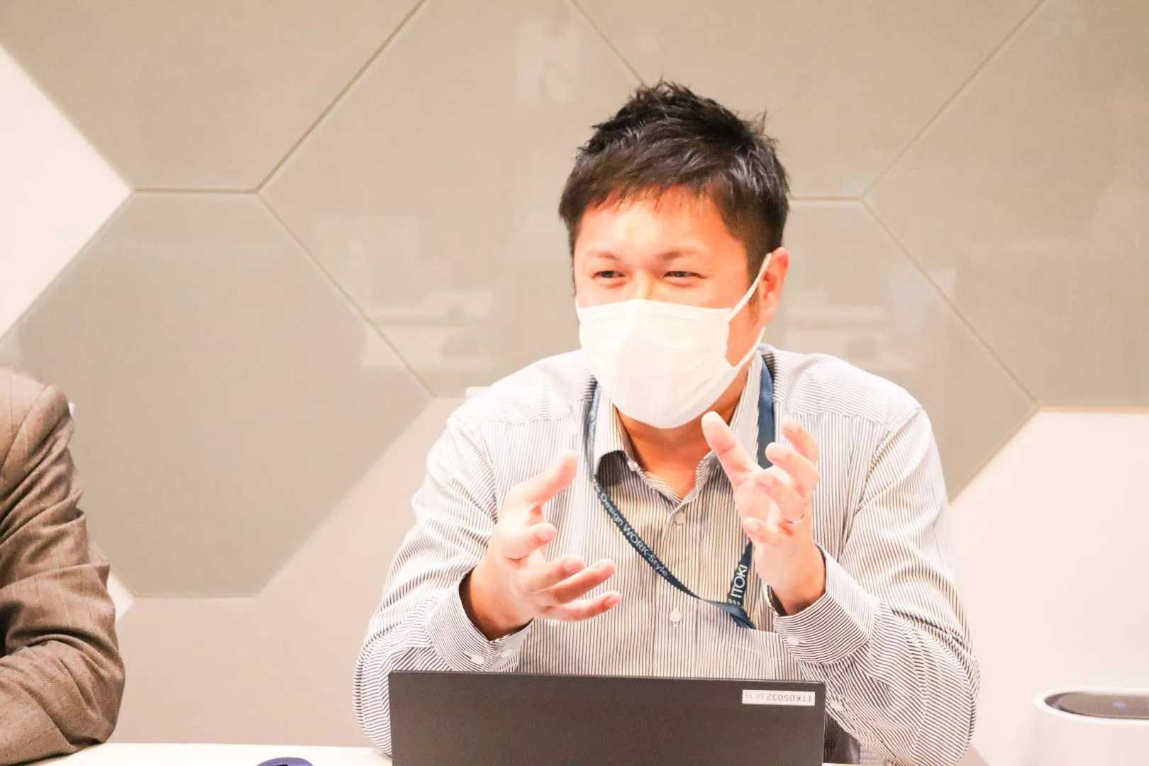 คุณอิวาเสะ : ตามที่คุณคาคุโนะได้กล่าวไปก่อนหน้านี้ การขนส่งสินค้าของเราได้รับการซัพพอร์ตจากบริษัทจัดส่งสินค้าทั่วประเทศ การสื่อสารกับลูกค้าตามสถานที่ที่ต้องจัดส่งสินค้านั้นเป็นงานของฝ่ายขายของเรา แต่งานขนส่งสินค้า และ งานออกแบบสร้างสถานที่ทำงาน เป็นงานของบริษัทภายนอกทั้งหมด เนื่องจากเรามีผู้ที่ต้องทำการติดต่อมากมายในการดำเนินงาน จึงทำให้อาจมีบางครั้งที่เกิดความล่าช้าในการแบ่งปันข้อมูลล่าสุดบ้าง